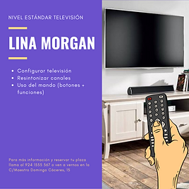 En nuestro paquete Lina Morgan ofrecemos un curso para el aprendizaje del uso del televisor, el mando y sus funciones. Es ideal para crear la base necesaria en personas que no la tienen, haciendo que puedan ser autónomos y no necesitar ayuda, disfrutando así de este medio de entretenimiento que les hace los días más ligeros.āā